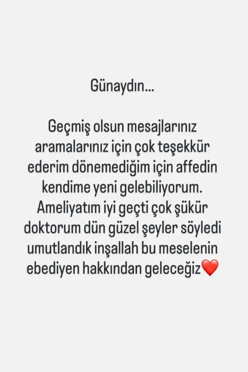 Dalkılıç, ameliyatın ardından paylaştığı mesajda, bu operasyonun artık son olmasını dilediğini vurguladı: